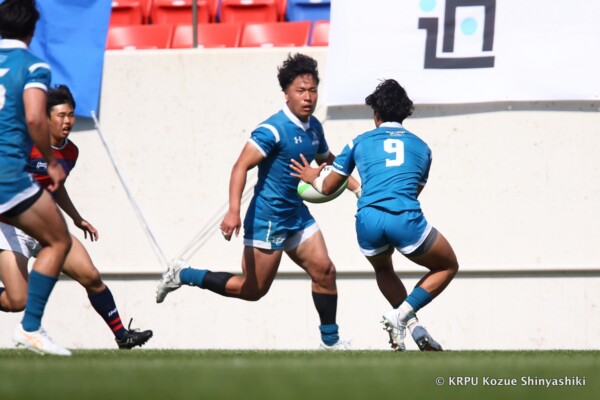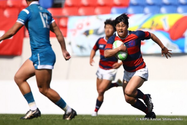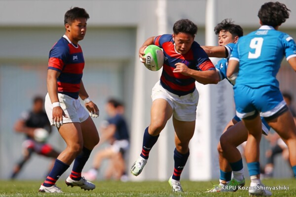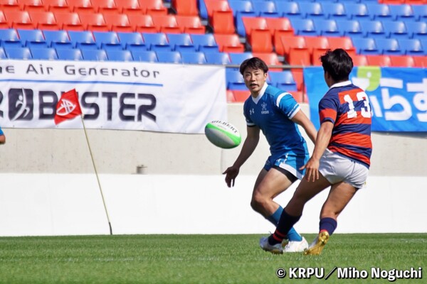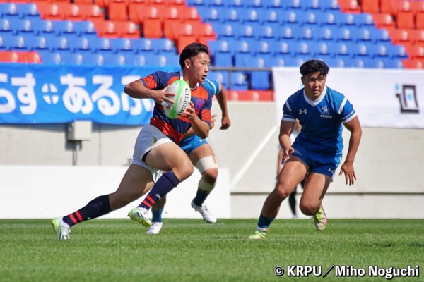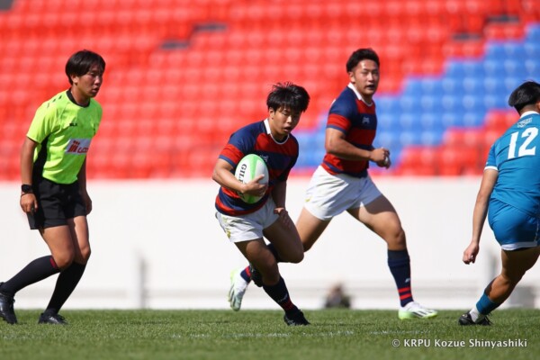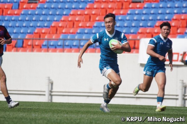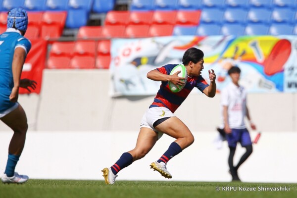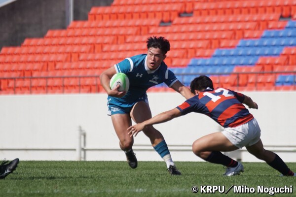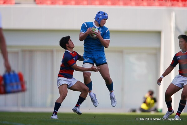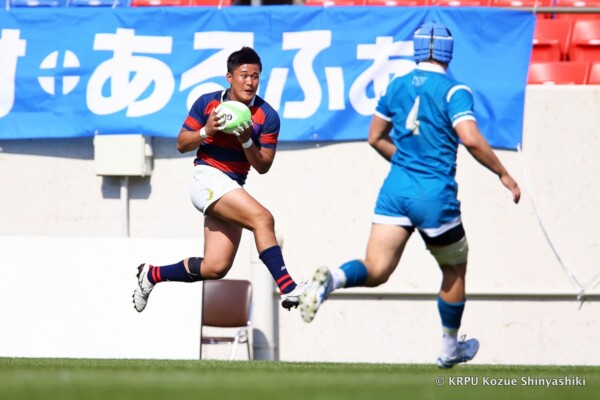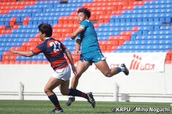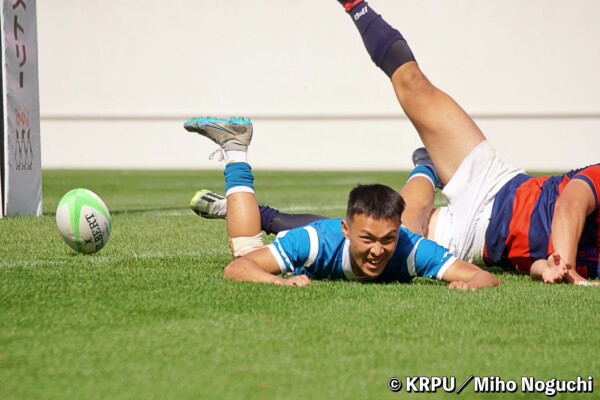 続く2分にもキックオフからのこぼれ球を⑦井上が確保、⑨渡邊から⑩西柊太郎が中央にノーホイッスルトライしGも決めて14-0とする。