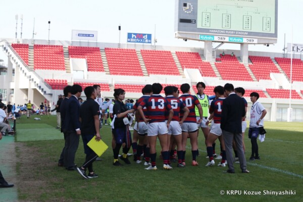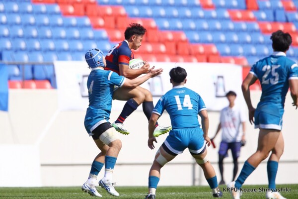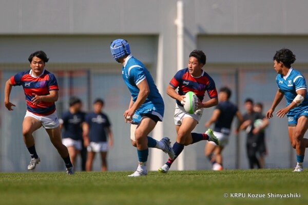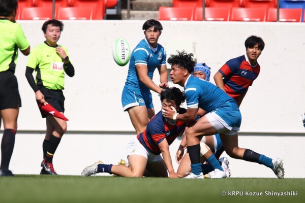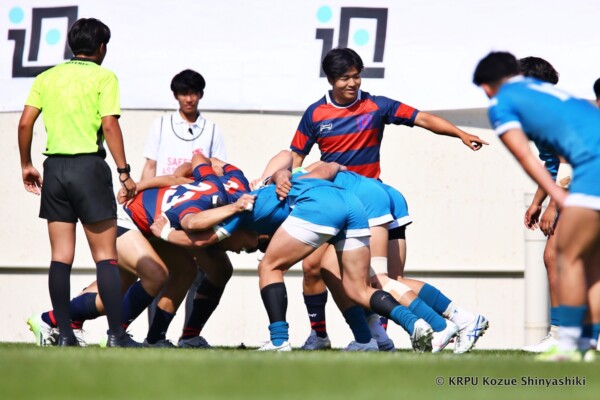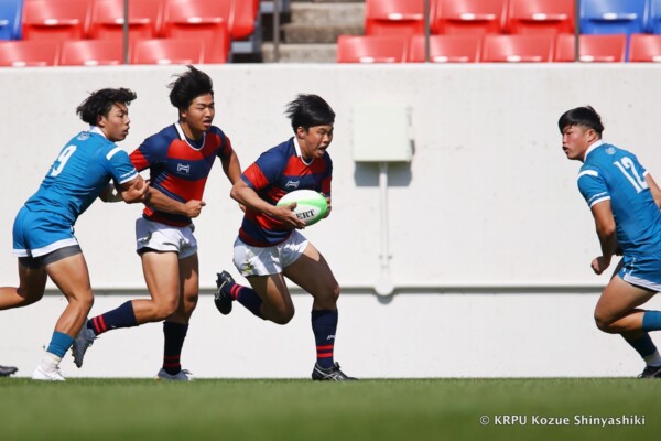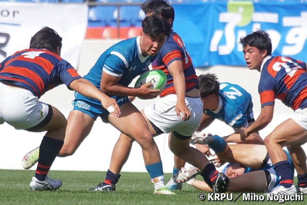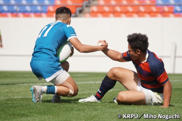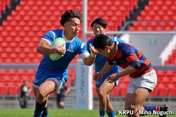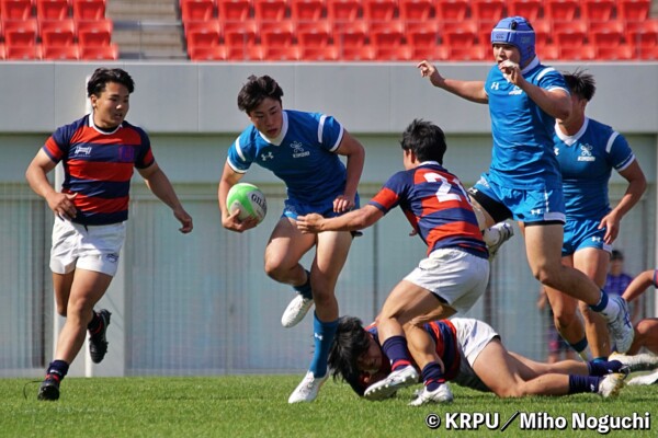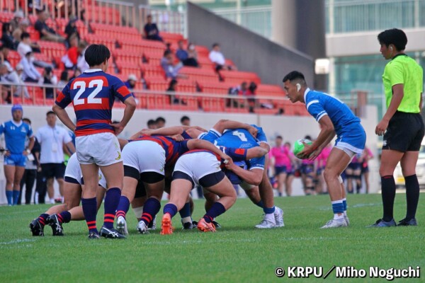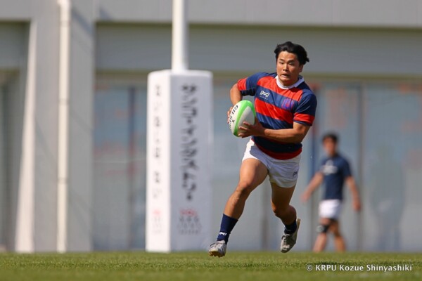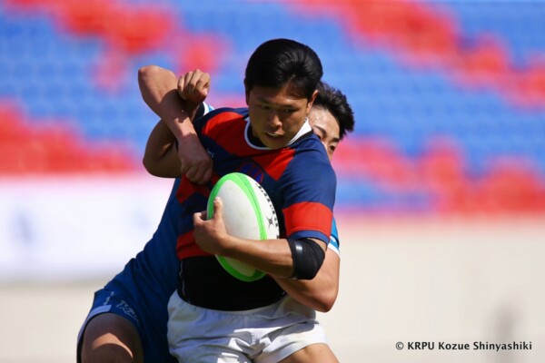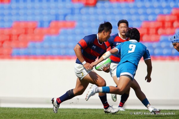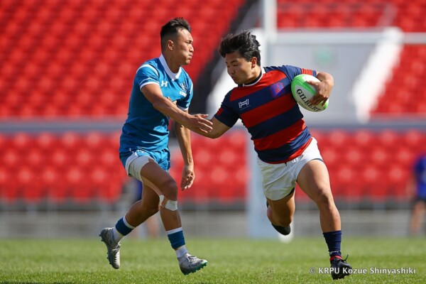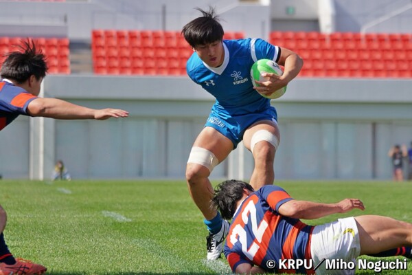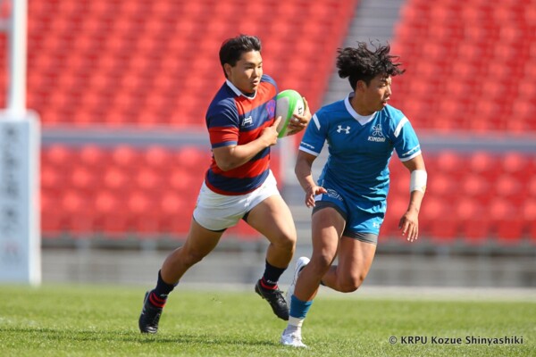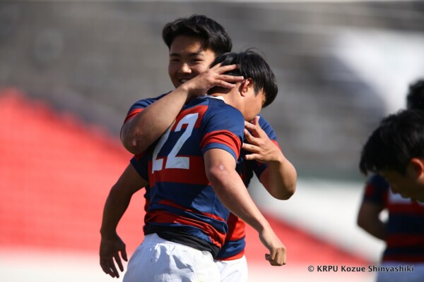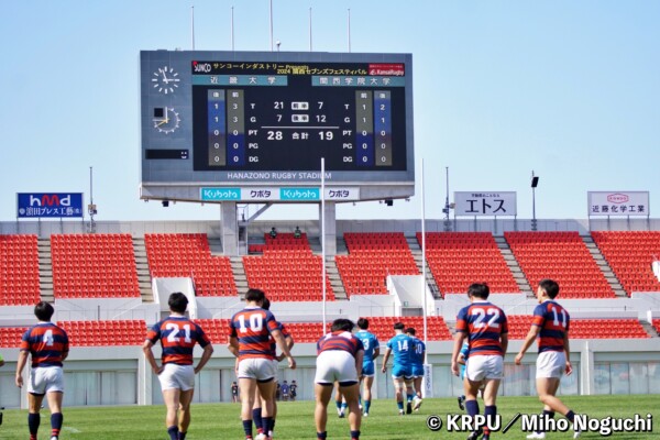 しかし、勝ち切ったのは近大だった。5分、中央付近でパスを回していた近大⑭中村優太が縦に切れ込み⑪李晛にオフロードパス。⑪李が走り切り中央にトライ、⑩西のGも決まり、28-19として、そのまま逃げ切って勝利し、決勝に駒を進めた。