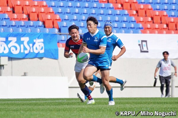 2分にも㉒須股が密集をこじ開けて左中間にトライ(G不成功)し、19-21と1G差に詰め寄り、勝敗の行方は判らなくなる。