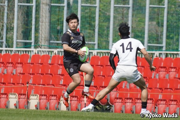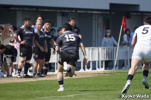 3分にはリコージャパンがゴール前ラックからインゴールへ蹴りこんだボールを15番高田 清太郎が押さえて5-7。