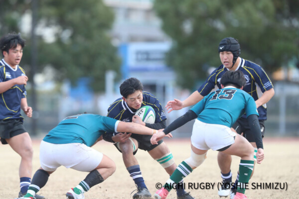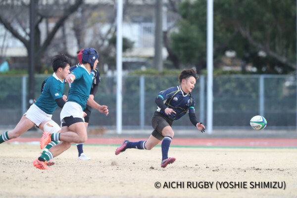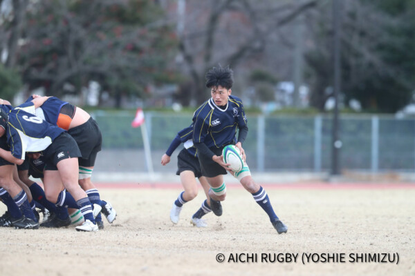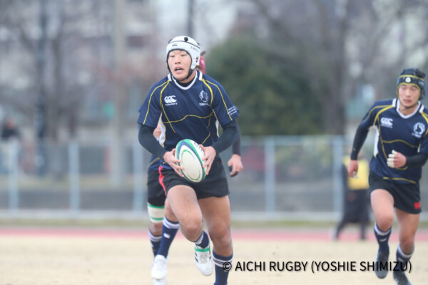 前半7分、ラインアウトから攻撃を始めると左右に大きくボールを動かし、最後は⑮軽部周太郎が右隅にトライ、コンバージョンも成功し7-0と先制する。