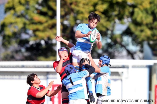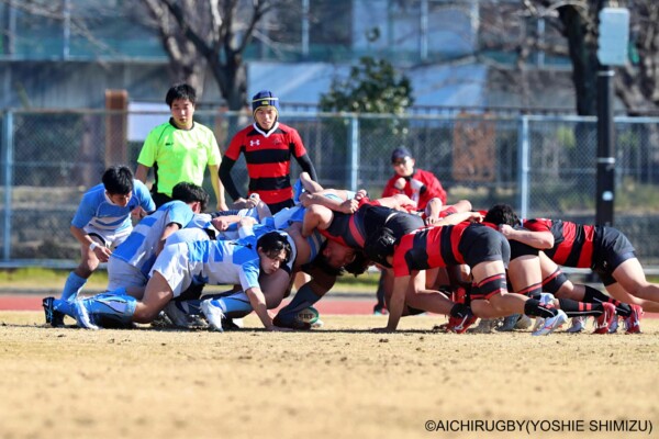 東京学芸大は、前半6分にも、自陣22m外側右での相手アタックで相手ノックオンからマイボールとすると相手陣ゴール前へロングキック、懸命に戻った愛知学院大はデットボールライン側へ蹴り出すと、東京学芸大の相手陣左中間でのゴール前5mスクラムとなる。
