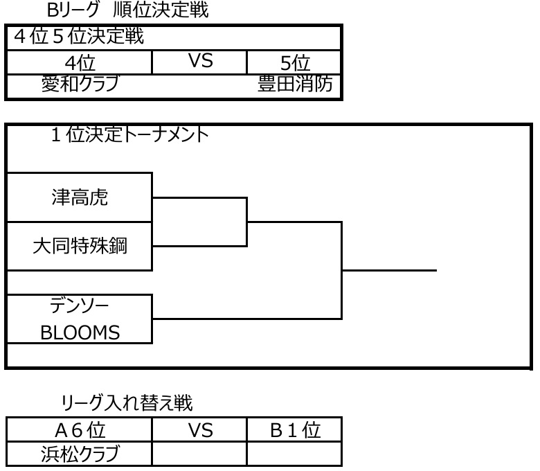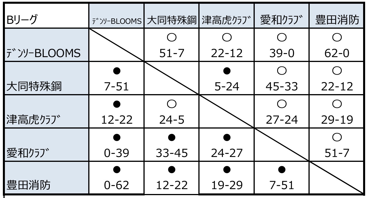 Bリーグ:愛和クラブ、大同特殊鋼、津高虎クラブ、デンソーBL00MS、豊田消防